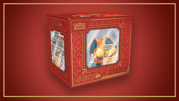 Racchiuse in una scatola ricca di fiammelle possiamo trovare ben 10 buste di espansione, una carta codice per il GCC Pokémon Live e ben 3 carte olografiche dedicate alla linea evolutiva del Pokémon iniziale fuoco di Kanto, tra cui quella di Charizard-ex che è la carta promozionale della collezione. Ma la vera protagonista del box è la statuina di Charizard, raffigurato nella stessa posizione della sua controparte cartacea, che presenta in aggiunta un espositore da una carta, utile per riporre Charizard-ex.