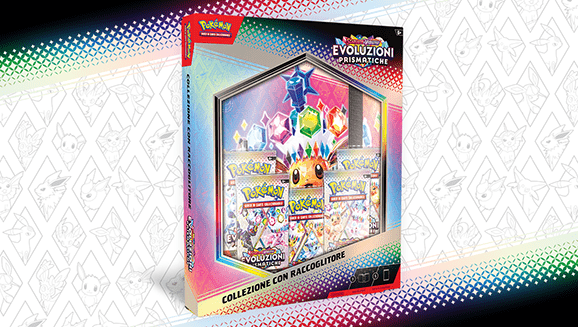 Rimanendo in tema Eevee ed Evoluzioni Prismatiche, se il box precedente vi sembra un po’ troppo questo potrebbe fare al caso vostro: con 5 buste dell’espansione e un raccoglitore, con protagonista Eevee, con ben 21 pagine da 9 tasche ciascuna la vostra collezione sarà al sicuro all’interno di un grazioso quaderno protettivo.