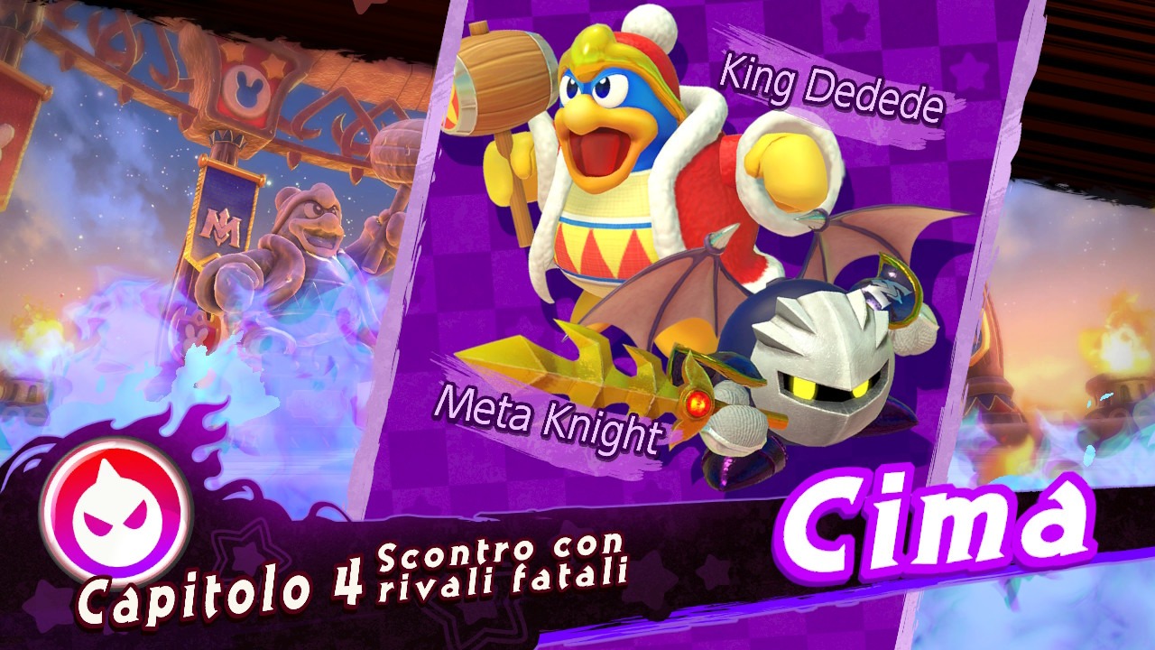 Pur non essendo un gioco che segue una storia precisa basando il gameplay principalmente sulle battaglie, nella modalità storia intitolata Rivali Fatali avremo modo di sfidare King Dedede e Meta Knight, forti di un’insolita alleanza. L’obiettivo è quello di raggiungere la cima di una torre in compagnia di un alleato gestito dalla CPU o da un amico in locale, sfidando su ogni piano nemici diversi per poi scontrarsi con il boss all’ultimo piano.