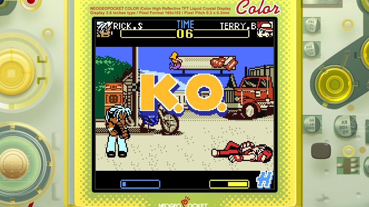 Fatal Fury: First Contact non aggiunge nulla di nuovo a quello che fu il gioco originale. La vera perla di questi titoli riproposti da SNK è sicuramente il NeoGeo Pocket Color. Proprio così, la console rivive insieme al gioco, presentandosi piccola e colorata all’interno dello schermo di Nintendo Switch.