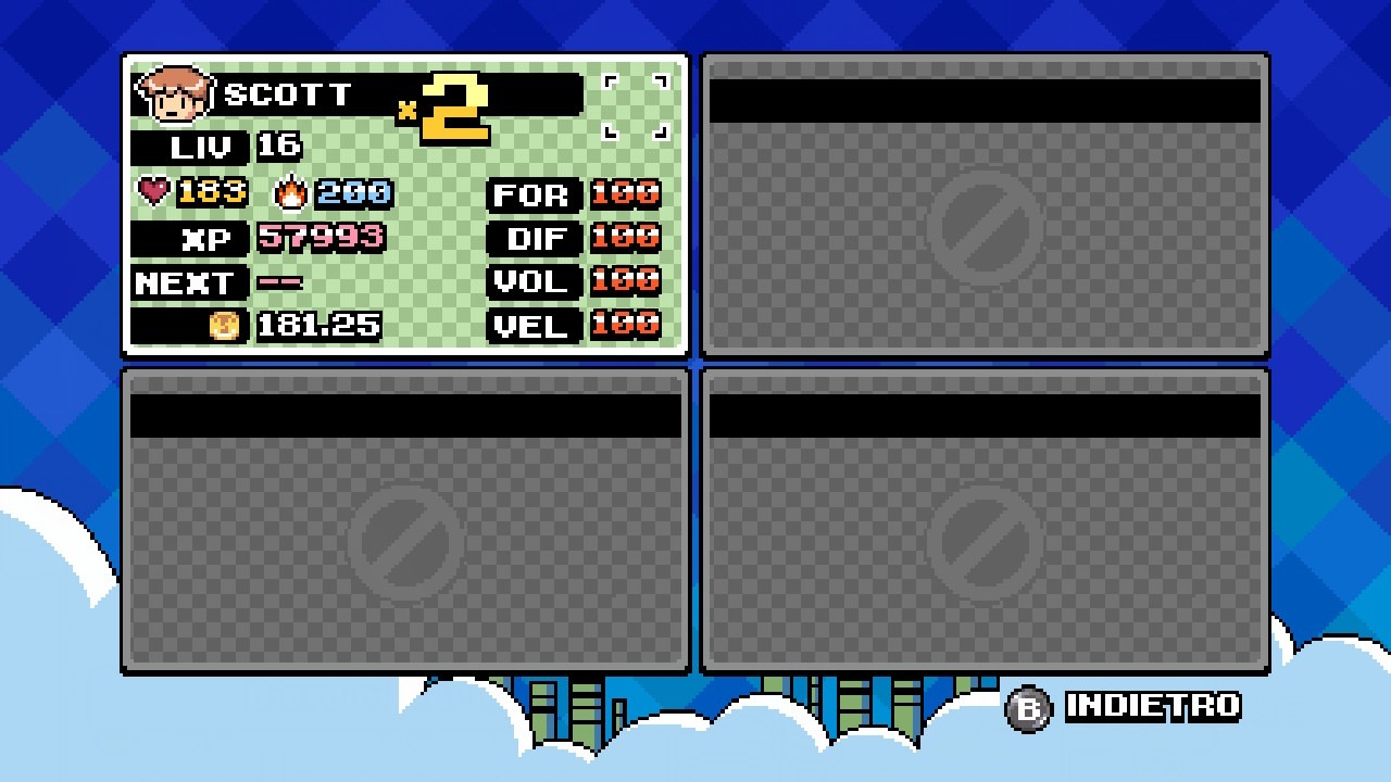 Combatterete con 3 vite iniziali, dei punti vita e dei punti fegato: i punti vita scalano ogni volta che subite un attacco e quando raggiungono lo 0 saranno i punti fegato ad essere convertiti in PV. I punti fegato servono però anche a eseguire dei colpi più potenti come la piroetta che può essere di grande aiuto se si resta incastrati in un’orda di nemici. Scott Pilgrim vs. The World: The Game si adatta a tutti i tipi di giocatore dato che potrete modificare la difficoltà in qualunque momento.