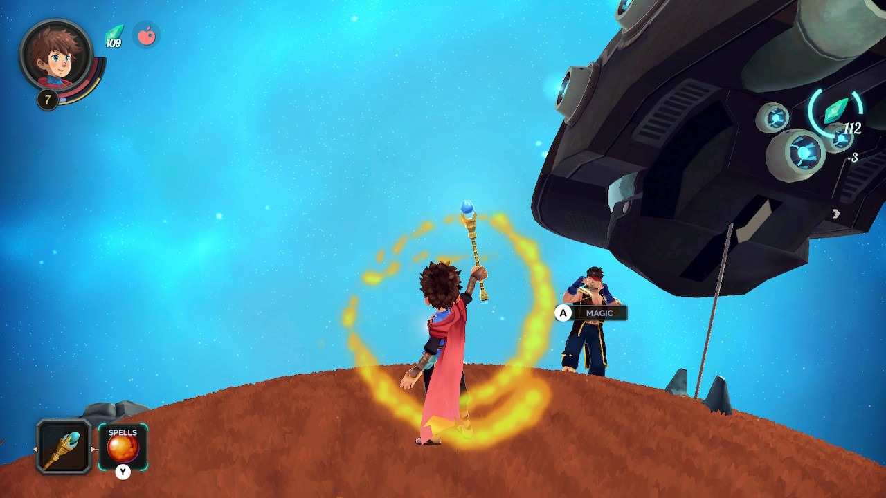 Per fortuna non saremo confinati nel nostro piccolo paradiso per sempre, ma potremo viaggiare verso nuove destinazioni, pianeti limitrofi non tondeggianti e dagli scenari radicalmente differenti. Vi descriveremo il primo, Ankora, una terra innevata abitata da yeti buoni, anch’essi venditori di materiali e fornitori di quest. Il gioco è stato promosso come un’avventura soprattutto per questo suo aspetto esplorativo, ma, a parte nemici in più e un diverso fungo da raccogliere, ci spiace dire che anche qui non c’è molto da fare se non interagire coi personaggi per ricevere nuove missioni o comprare e vendere oggetti.