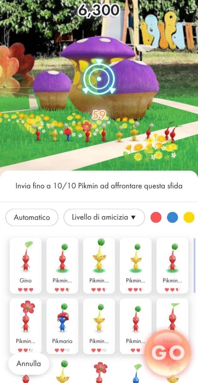 Infine dal livello 15 è possibile partecipare a delle speciali sfide. I 5 Pikmin più forti della nostra squadra potranno abbattere un fungo gigante per ottenere frutti e oggetti rari. In base al tempo necessario per azzerare i Punti Salute del fungo, otterremo più o meno ricompense. Sarà possibile giocare con altri quattro giocatori per massimizzare i risultati.