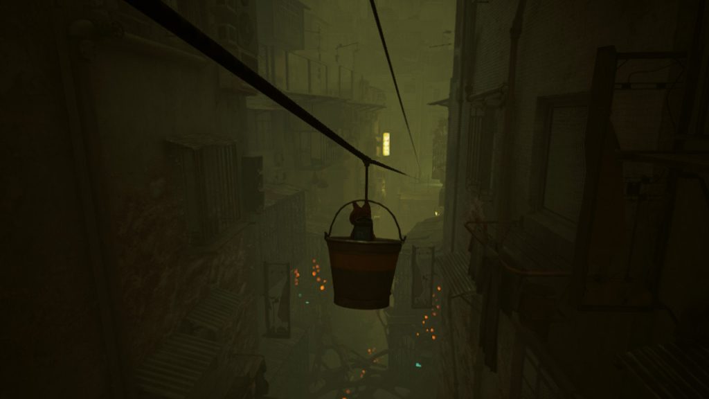 Ogni zona della città ha la sua unicità: si alternano vicoli bui e labirintici a spazi più aperti, ma sempre immersi in una suggestiva atmosfera cyberpunk, con luci al neon e segnali di un passato ormai dimenticato. La verticalità della mappa è sfruttata al massimo, con strade e passaggi che si intersecano a più livelli, creando un ambiente dinamico dove il gatto può esplorare liberamente.