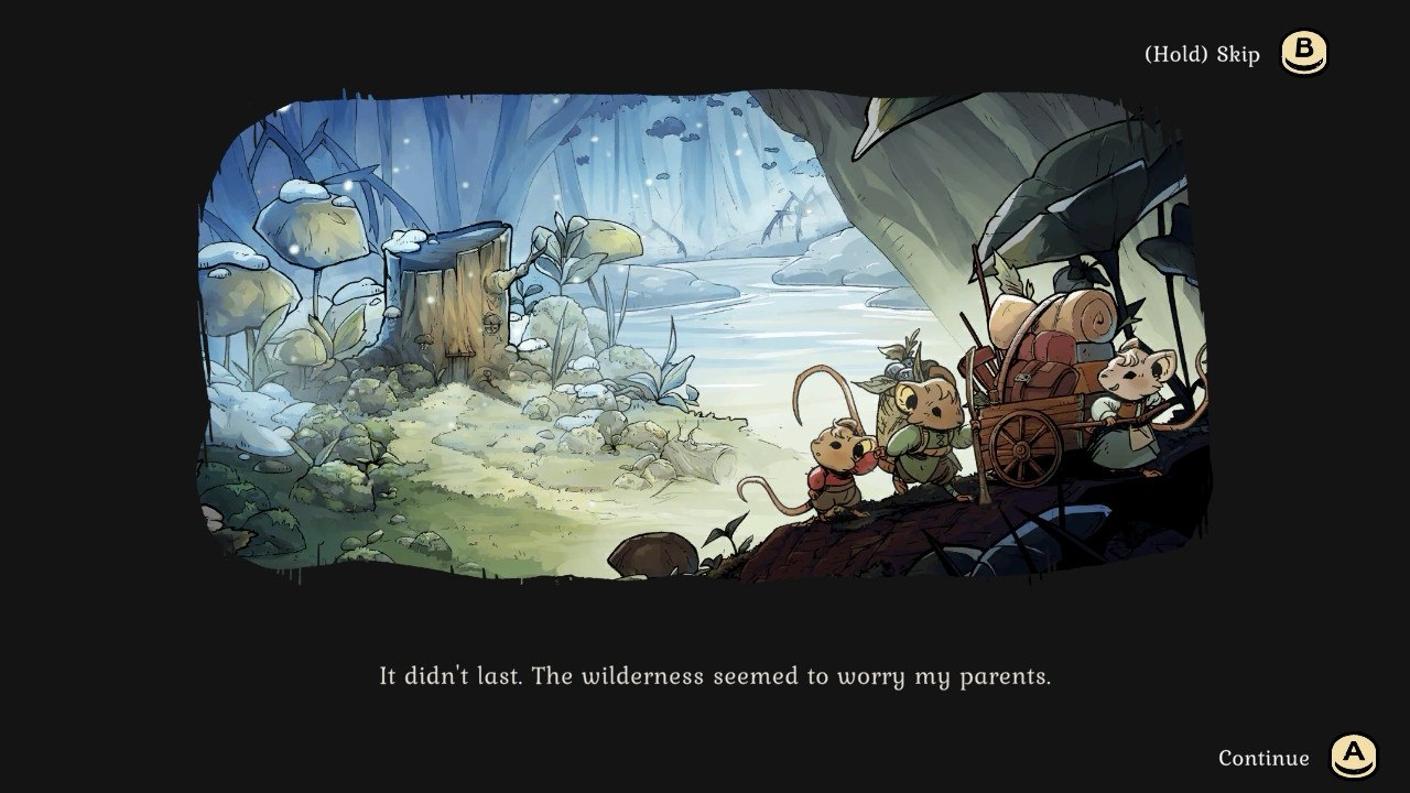 Segnato dal terribile lutto, il Topino decide di tornare nella casa natale tanto amata e di restaurarla grazie all’aiuto della Zietta Betulina e degli altri animali del bosco, che renderanno il difficile inverno molto più caloroso. La triste situazione permette al giocatore di riflettere riguardo alcuni temi tanto dolorosi quanto comuni sempre in modo delicato