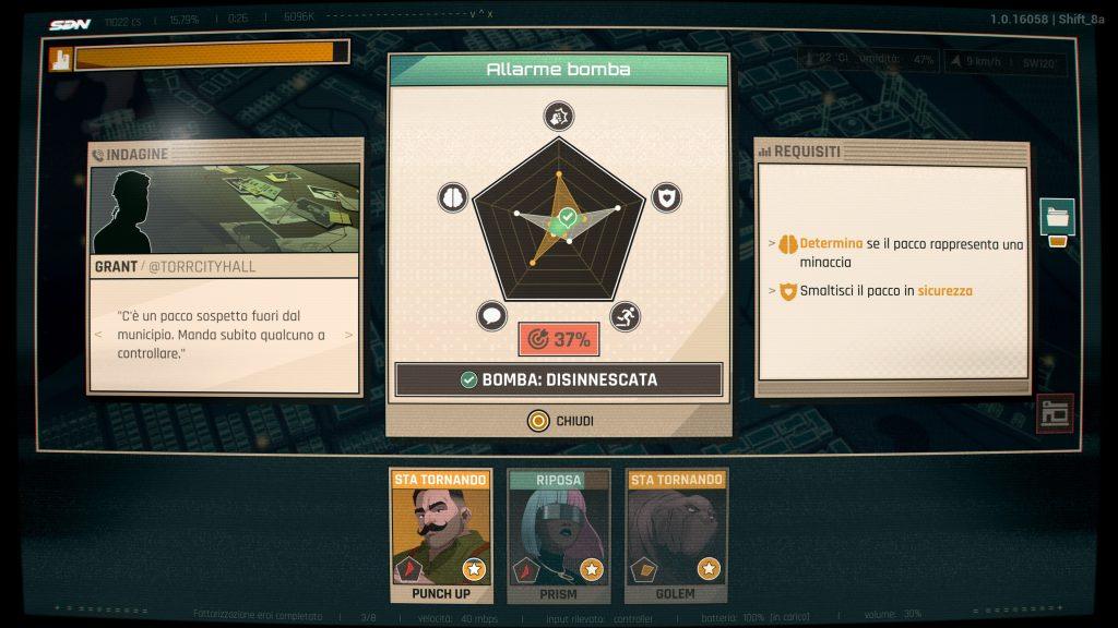 Il nostro compito in ogni turno di lavoro, come suggerisce il nome stesso del gioco, è quello di restare alla scrivania e rispondere alle chiamate d’emergenza, scegliendo di volta in volta l’eroe più adatto per risolvere la situazione. Memorizzare le abilità e le statistiche di ciascun personaggio, fondamentali per la buona riuscita delle missioni, non rende mai questa fase noiosa, nonostante possa sembrare una mansione di poco conto. Al contrario, si tratta di una meccanica ben riuscita, che mantiene alta l’attenzione del giocatore.