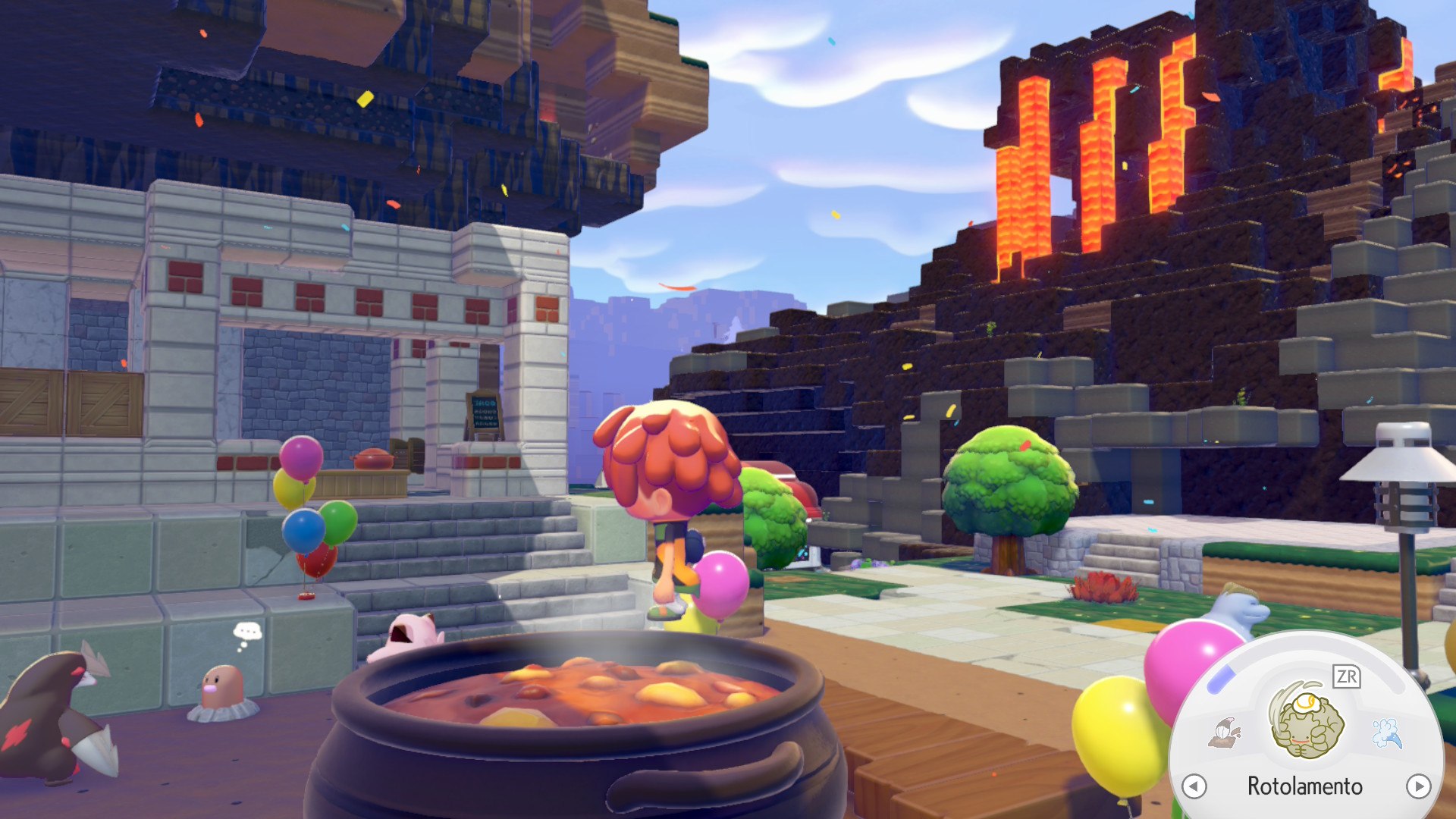 Grazie a questi poteri possiamo fare di tutto, da creare campi coltivati a solcare i cieli, sfruttando poi le caratteristiche peculiari dei Pokémon che incontriamo lungo il cammino per trasformare argilla in mattoni, riciclare la carta straccia e piazzare betoniere per la creazione del cemento. Prima di parlare dei Pokémon e prima di avanzare con la storia del gioco, la prima sensazione restituita da Pokopia è una: essere Ditto è sinonimo di libertà.