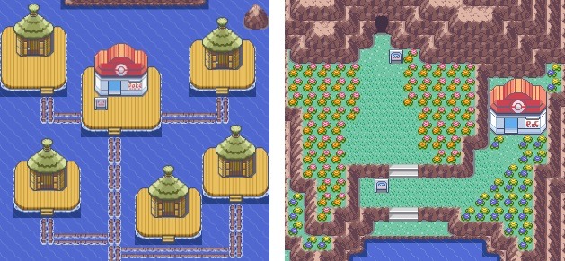 Grazie alle caratteristiche che poteva vantare il Game Boy Color, la struttura esterna dei Centri Pokémon fu differenziata non solo dal punto di vista architettonico, ma anche dal punto di vista cromatico. In questo modo ogni città ebbe un Centro unico che si sposava pienamente con l’ambiente circostante. Basta guardare il moderno Centro Pokémon della metropoli di Fiordoropoli e confrontarlo con l’architettura più tradizionale di quello della piccola Azalina. Tuttavia questo vale solo per la regione di Johto, poiché per la regione di Kanto, che possiamo visitare dopo aver sconfitto la Lega Pokémon, l’aspetto esteriore sarà sempre uguale per ogni città, basato su quello della generazione precedente, mentre l’interno sarà identico a quello di Johto, con due piani.