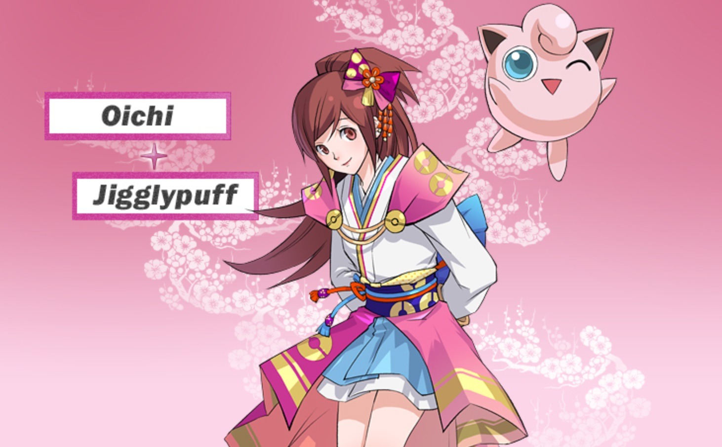 Oichi in Pokémon Conquest è accompagnata dal graziosissimo Jigglypufff, creatura tascabile capace di incantare amici e nemici con il suono melodioso della sua voce. Ma non lasciatevi ingannare dal suo sguardo angelico: se osate addormentarvi durante una sua esibizione non esiterà a scarabocchiare la vostra faccia! Oichi e Jigglypuff, con la loro abilità di fondere fascino e grinta, sono proprio un duo irresistibile!