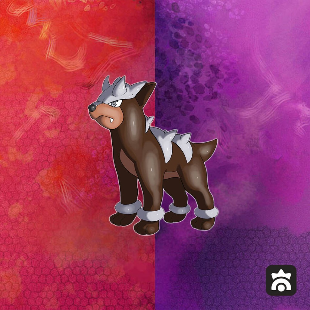 Questa specie discende dagli Houndoom nativi della regione di Johto, che furono importati quando gli scambi commerciali tra le due regioni si intensificarono. l mercanti subirono immediatamente il fascino degli Houndoom di Johto, ammirati per il loro aspetto spaventoso e per le loro eleganti corna. Giunti in questa nuova terra si sono però lentamente adattati al clima caldo, elemento che questa specie ricerca da sempre anche nella terra natia. Il contatto con una regione più calda e soleggiata, nonché un’alimentazione ricca di Ferro, Proteine e pietanze preparate con Bacche locali per esaltarne la muscolatura, ne hanno lentamente modificato la fisionomia e il tipo. Il manto si è leggermente schiarito, mentre il collare è diventato più massiccio e ha integrato delle terminazioni appuntite. Proprio in virtù di questo collare e del clima, la variante ha assunto il doppio tipo Fuoco/Acciaio, una vera e propria rarità nel mondo Pokémon. La loro grinta in battaglia e l’appartenenza al doppio tipo, hanno contribuito a cementarne la popolarità. In alcune zone della regione gli abitanti hanno l’abitudine di regalare ai neonati un amuleto in acciaio a forma di Houndoom. Un portafortuna donato per proteggere e scacciare la negatività, incarnata in varie leggende popolari dai loschi Delibird.