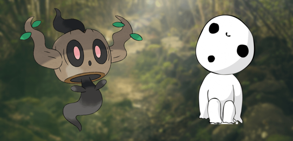 Gli Yokai possono anche essere degli spiriti legati a degli oggetti e non solo persone o esseri viventi, un esempio di questa categoria è sicuramente il Kodama (木魂) ovvero l’anima di un albero. Nel mondo dei Pokémon esistono diversi Pokémon che potrebbero essere ispirati a questo mostro, in questo caso abbiamo scelto Phantump, il Pokémon Ceppo di sesta generazione. Degli esemplari di Kodama possono anche essere visti ne “La principessa Mononoke“, famoso film d’animazione di Studio Ghibli.