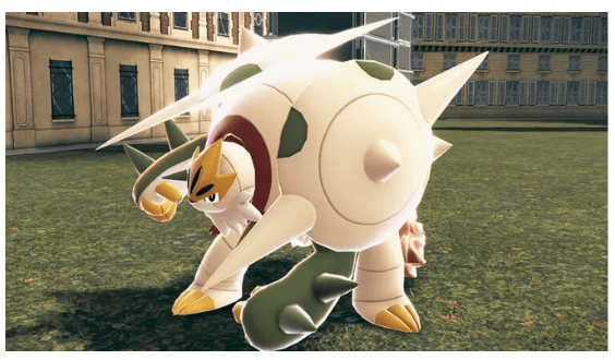 Un bagliore di luce avvolse il Pokémon che in poco tempo cambiò la sua fisionomia, trasformandolo in qualcosa che la bambina non aveva mai visto prima. Comparvero la corona e il mantello del cavaliere, ma c’era altro. Due possenti scudi si formarono attorno alle braccia del Pokémon: sembrava potessero resistere a qualsiasi colpo. Il Pangoro avversario si getto a capofitto su Chesnaught che si difese grazie ai due resistenti scudi formatisi sulle spalle, grazie ai quali riuscì a sbalzare via il Pokémon Occhiotruce.