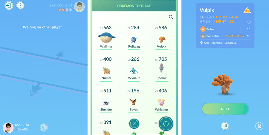 Differentemente dagli scambi dei giochi per console, in Pokémon GO ci sono alcune restrizioni, un costo in Polvere di stelle da pagare e la necessità di essere fisicamente presenti nello stesso luogo per effettuarlo.