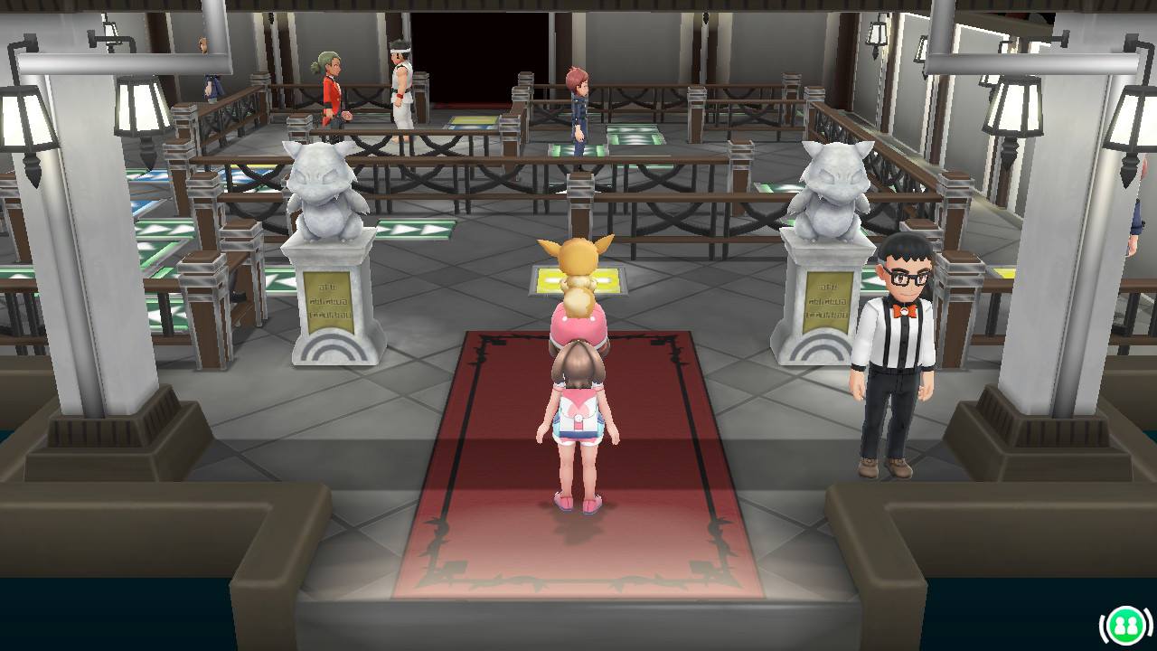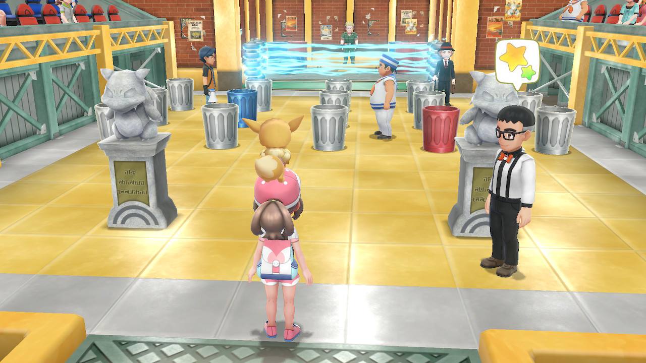 Pokémon: Let’s Go, Pikachu! e Let’s Go, Eevee! introducono una novità nel funzionamento delle Palestre: la guida all’ingresso, infatti, non si limita a dare consigli e a congratularsi, ma verifica altresì che il giocatore sia all’altezza delle sfide che lo attendono. Se si vuole lottare, pertanto, bisogna innanzitutto soddisfare determinate condizioni, come catturare un Pokémon di un certo tipo o procurarsene uno sufficientemente forte.